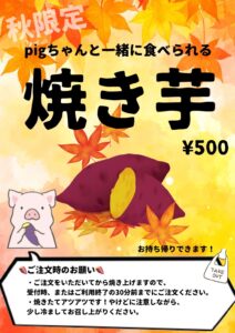 pignic farm&cafe あきる野店で期間限定で焼き芋を販売中🍠🍂