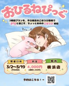 📕🐷 おひるねぴっぐ in 横浜|平日限定・2時間特別プラン 🐷💤
