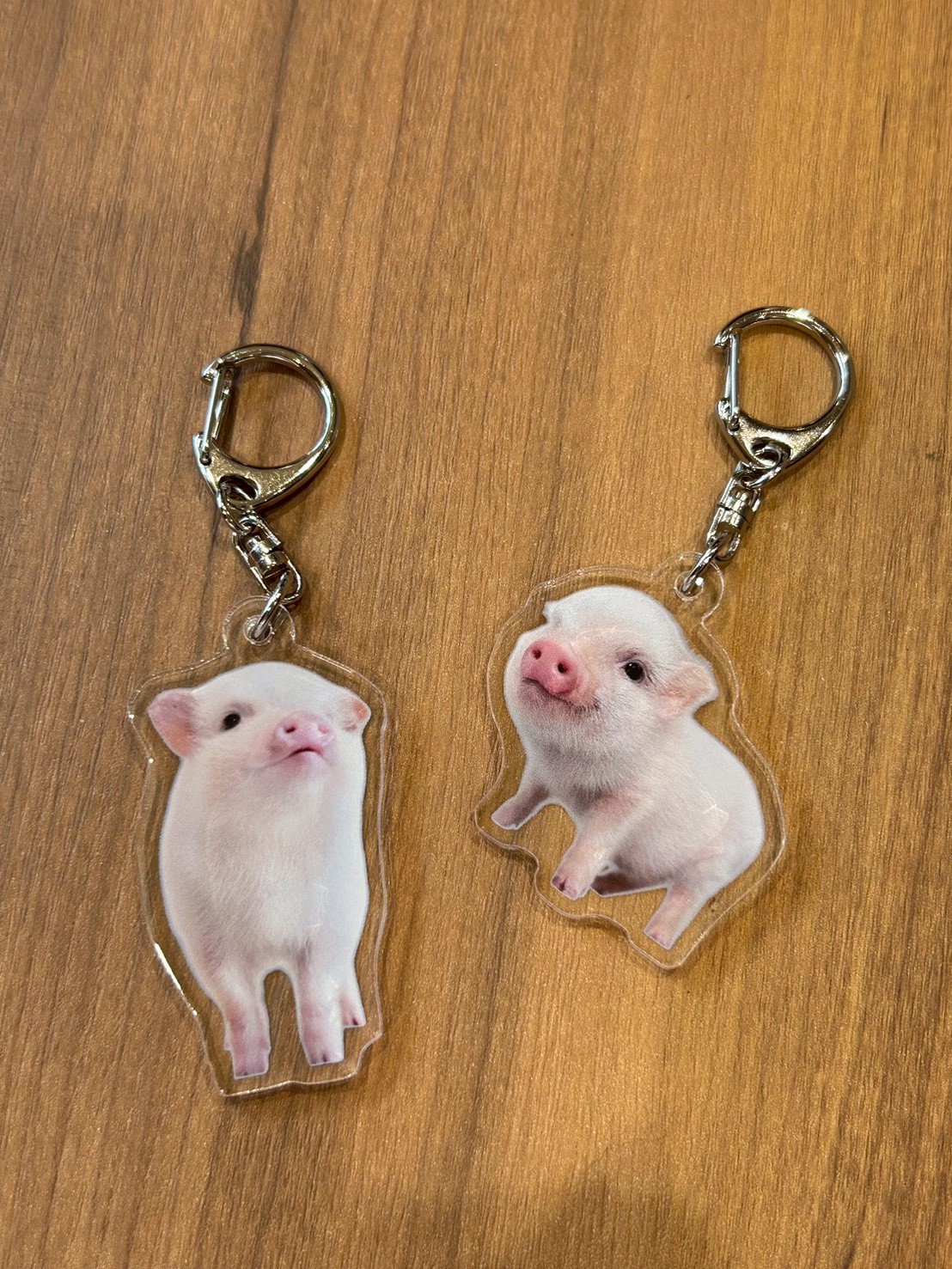 SNSでも大人気の2頭をモデルにした今回のキーホルダーは、可愛い表情がそのまま印刷されたpignic cafeオリジナルグッズ。バッグや鍵、ポーチなどに付けやすいサイズ感で、お土産やプレゼントにもぴったりです。