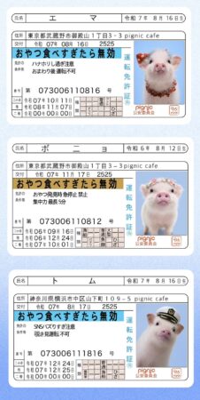 アイドルpigたちの免許証風カード。