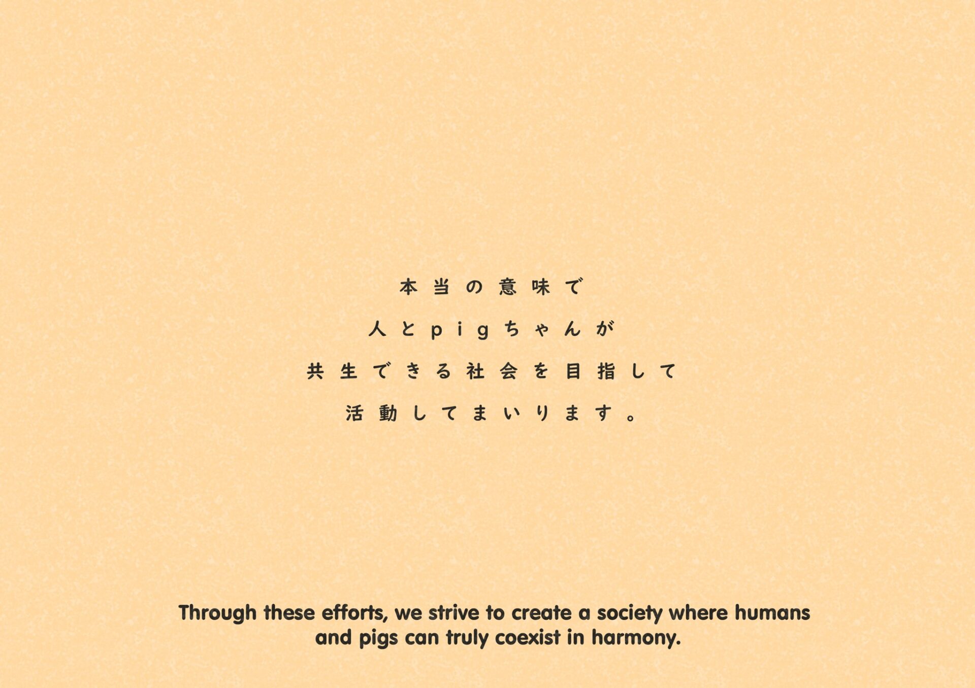 私たちの活動の根底にあるのは、「本当の意味で、人とpigちゃんが共生できる社会」です。