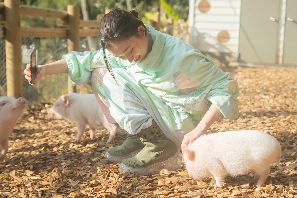 普段、泥まみれで牧場の清掃作業している私たちスタッフは、齧る・汚すことがとにかく怖かったのですが、モデルさん達は優しい眼差しでpigを受け入れてくださいました。